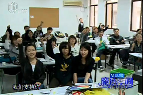 节目中东华莱佛士室内设计专业的学生为马楷老师加油鼓劲