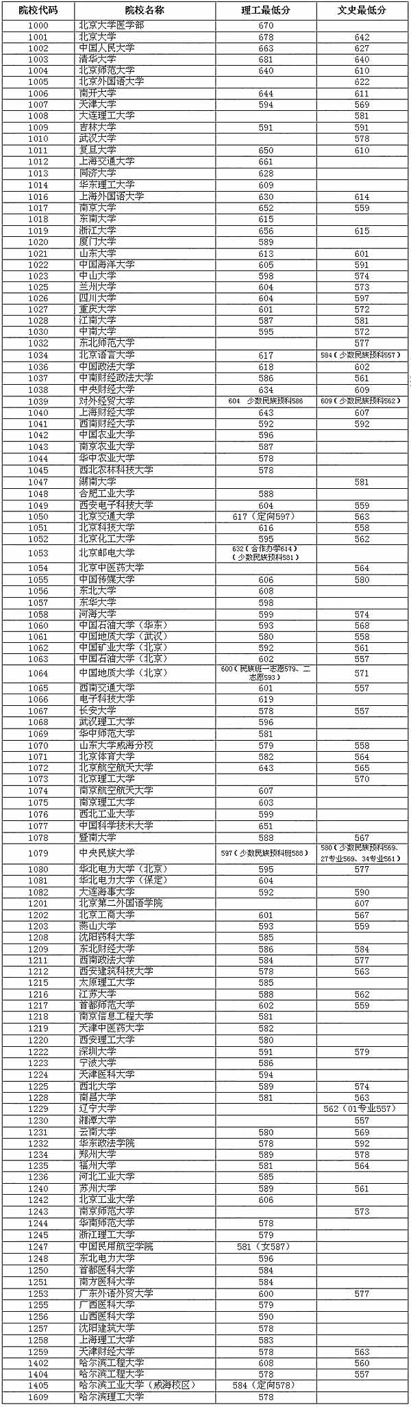 2006年普通高校黑龙江省最低录取分数(一表院校) |