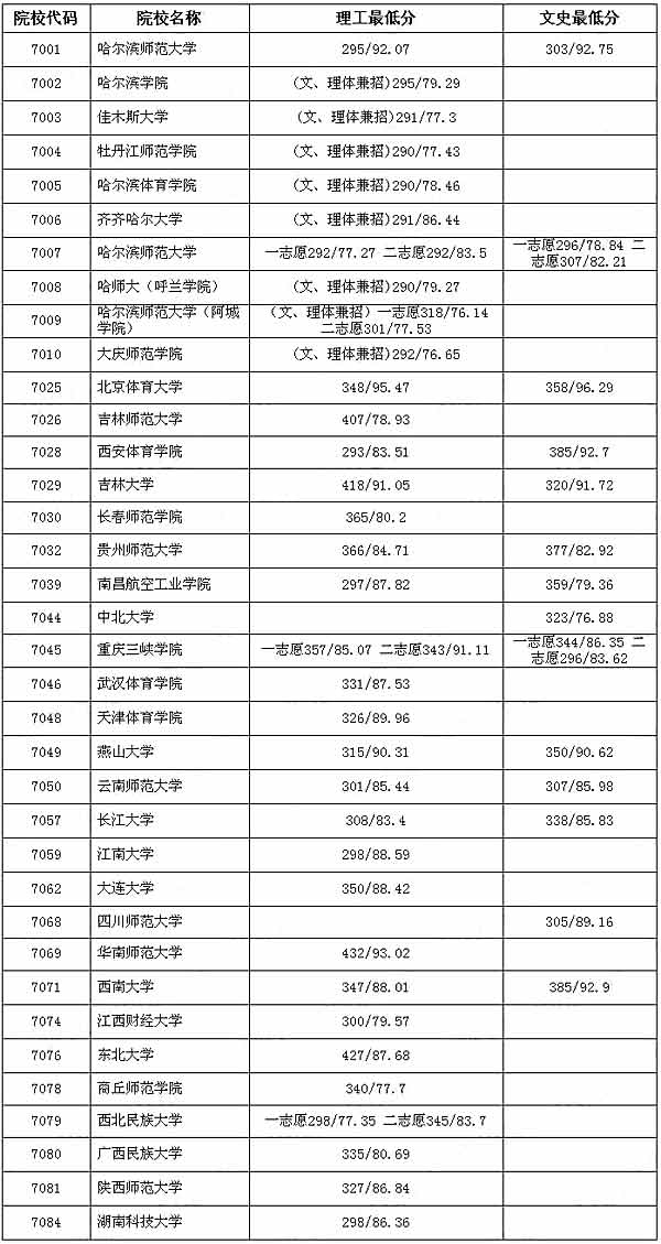 2006年普通高校黑龙江省最低录取分数(体育院校) |