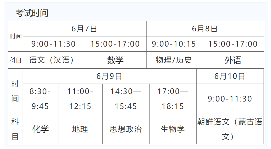 黑龙江2025年高考时间为6月7日-10日,各科目时间安排如下: