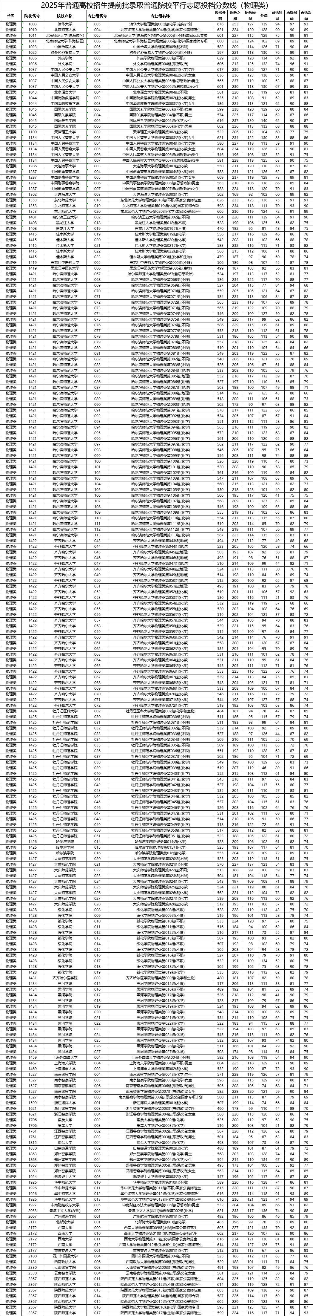 附件【附件1:2025年普通高校招生提前批录取普通院校平行志愿投档分数线(物理类).xlsx】