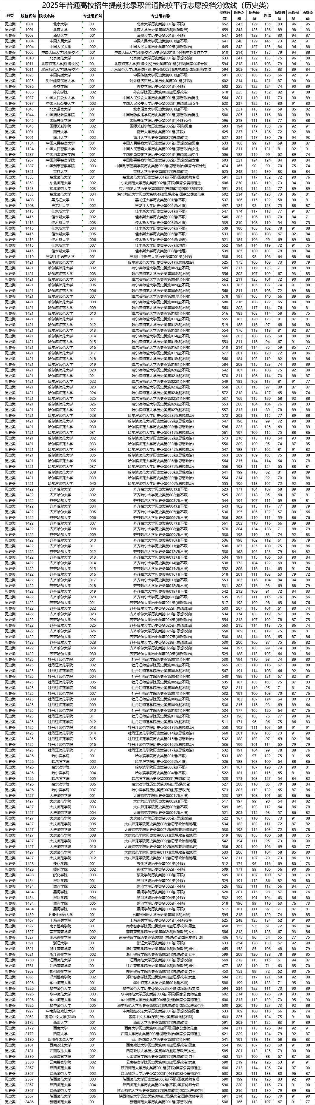 附件【附件2:2025年普通高校招生提前批录取普通院校平行志愿投档分数线(历史类).xlsx】