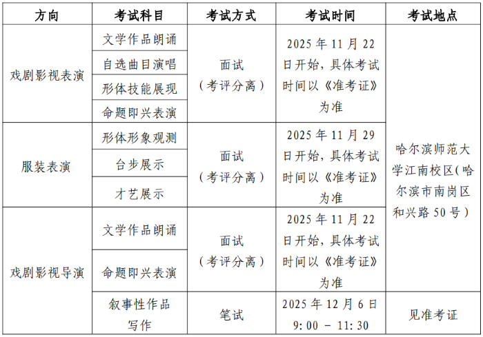 5.考生凭《准考证》和《居民身份证》参加考试,具体时间和地点以准考证为准。考生在面试考试时,有关着装、道具等方面要求应按照《黑龙江省2026年普通高等学校艺术类专业省级统一考试说明》做好考前准备,不得携带考试规定以外的物品进入考场。