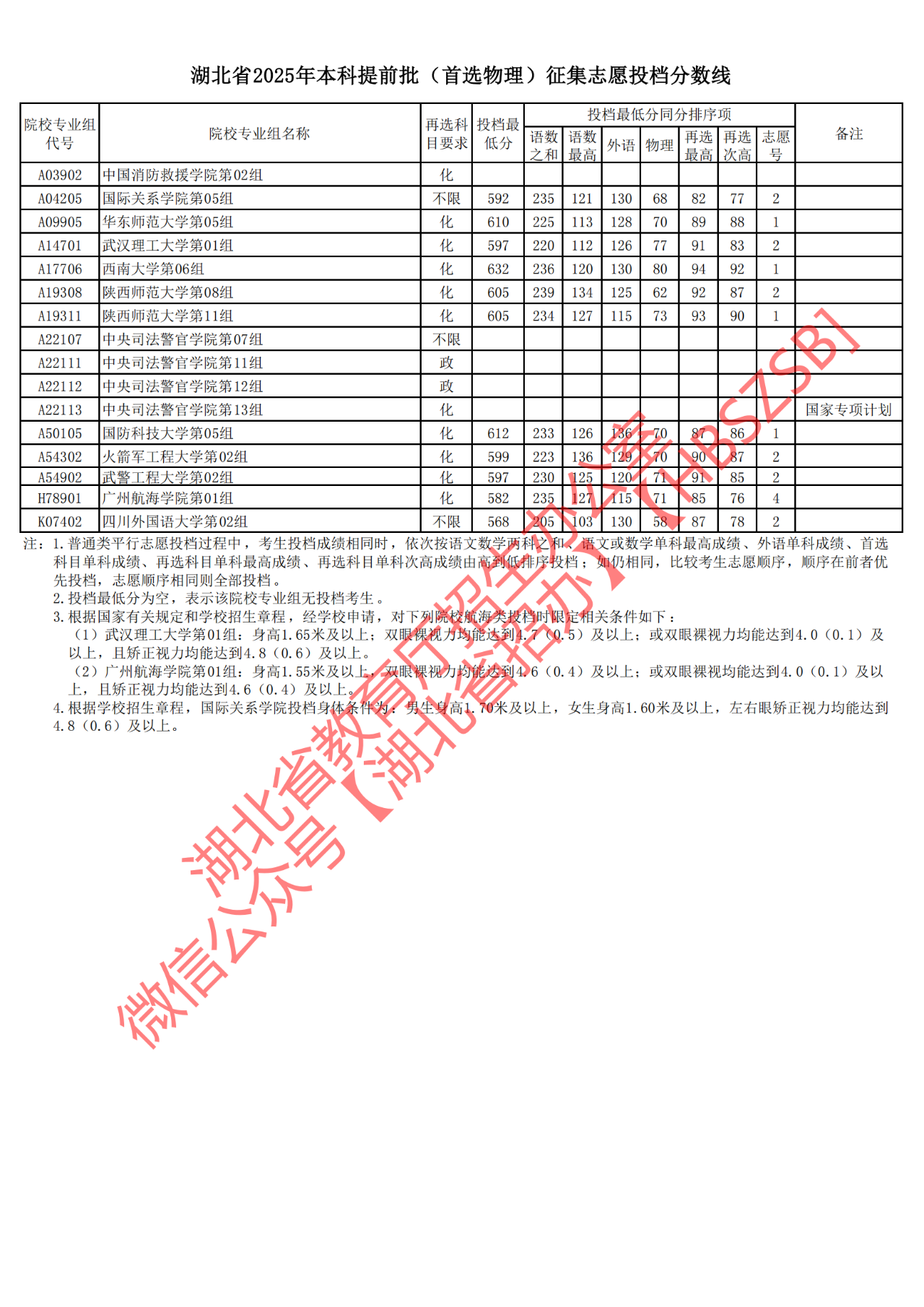 湖北省2025年本科提前批(首选物理)征集志愿投档分数线已发布,具体内容如下: