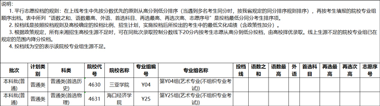 湖南省2025年普通高校招生本科批(普通类)第二次征集志愿投档分数线(不组织专业考试的艺术专业)