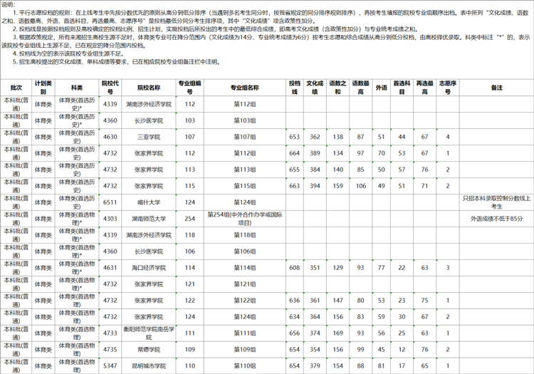 湖南省2025年普通高校招生本科批(体育类)第二次征集志愿投档分数线
