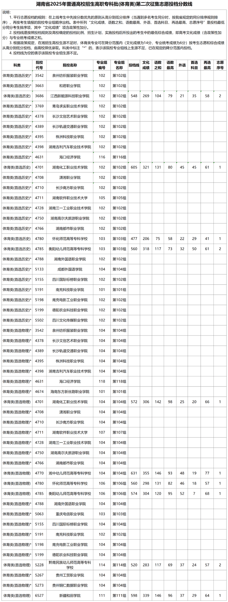 湖南省2025年普通高校招生高职专科批(体育类)第二次征集志愿投档分数线已发布,具体内容如下: