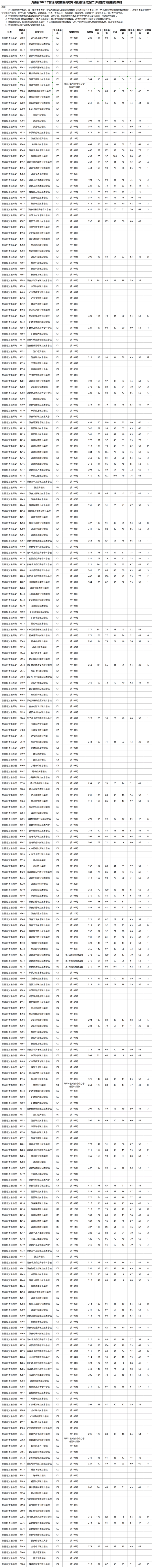 湖南省2025年普通高校招生高职专科批(普通类)第二次征集志愿投档分数线