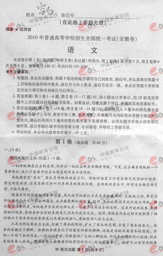 http://gaokao.eol.cn/ 来源: 2010-06-07