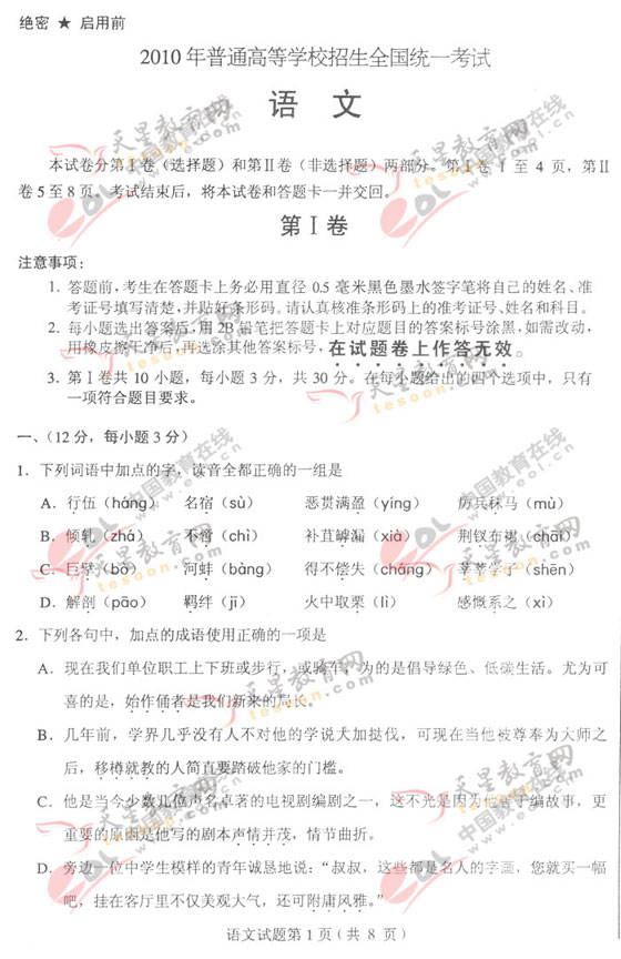 http://gaokao.eol.cn/ 来源: 2010-06-07