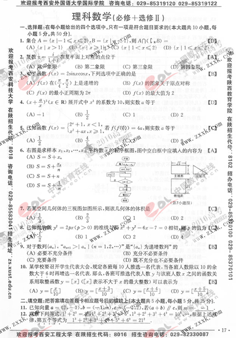 2010陕西省高考试题发布:理科数学试卷及答案