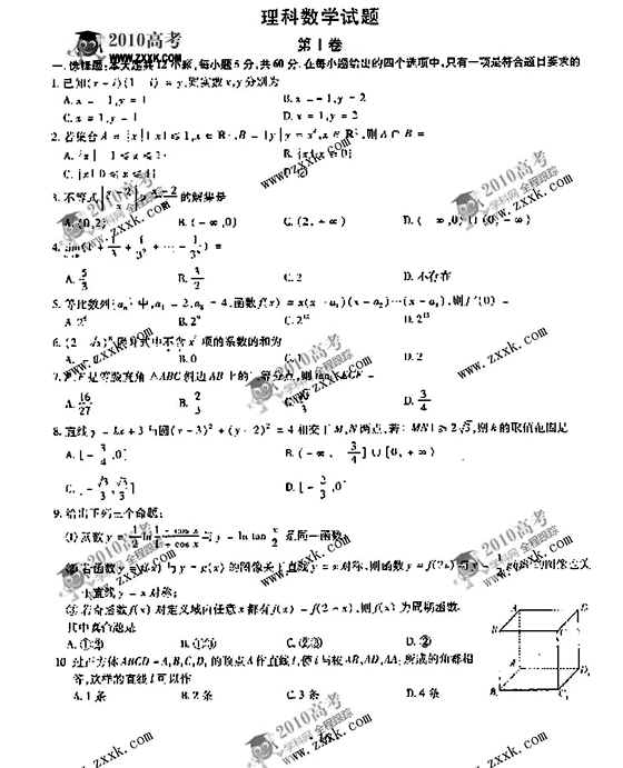 2010年江西省高考试题发布:理科数学试卷及答案