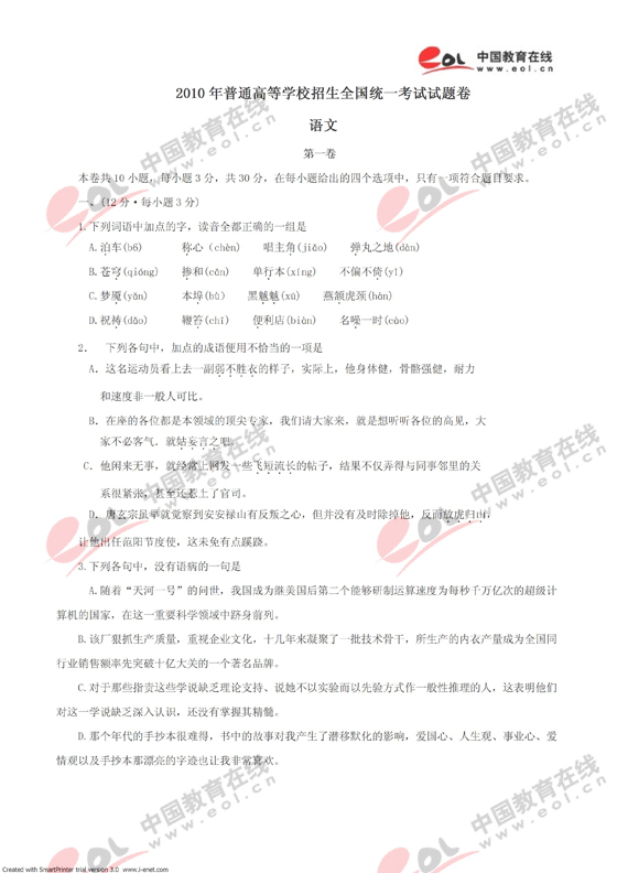 http://gaokao.eol.cn/ 来源: 2010-06-09