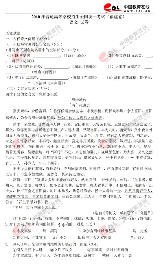 http://gaokao.eol.cn/ 来源: 2010-06-09