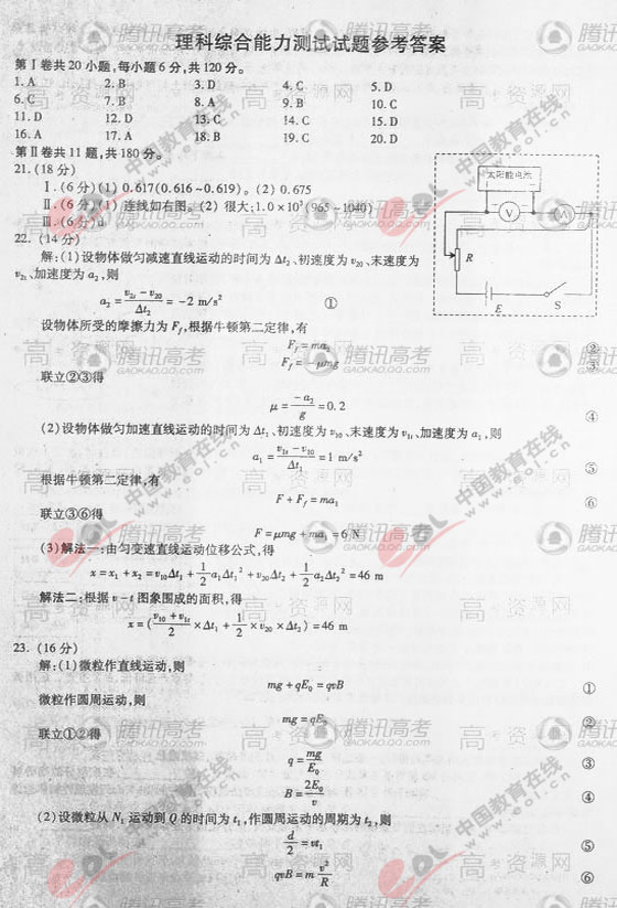 点击查看2010年安徽省高考试题:理科综合试卷
