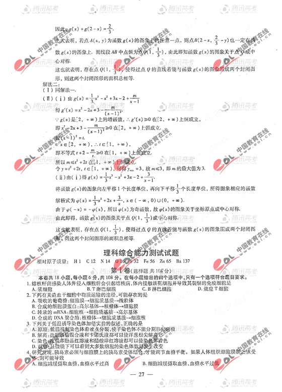 2010年福建省高考试题发布:理综试卷及答案