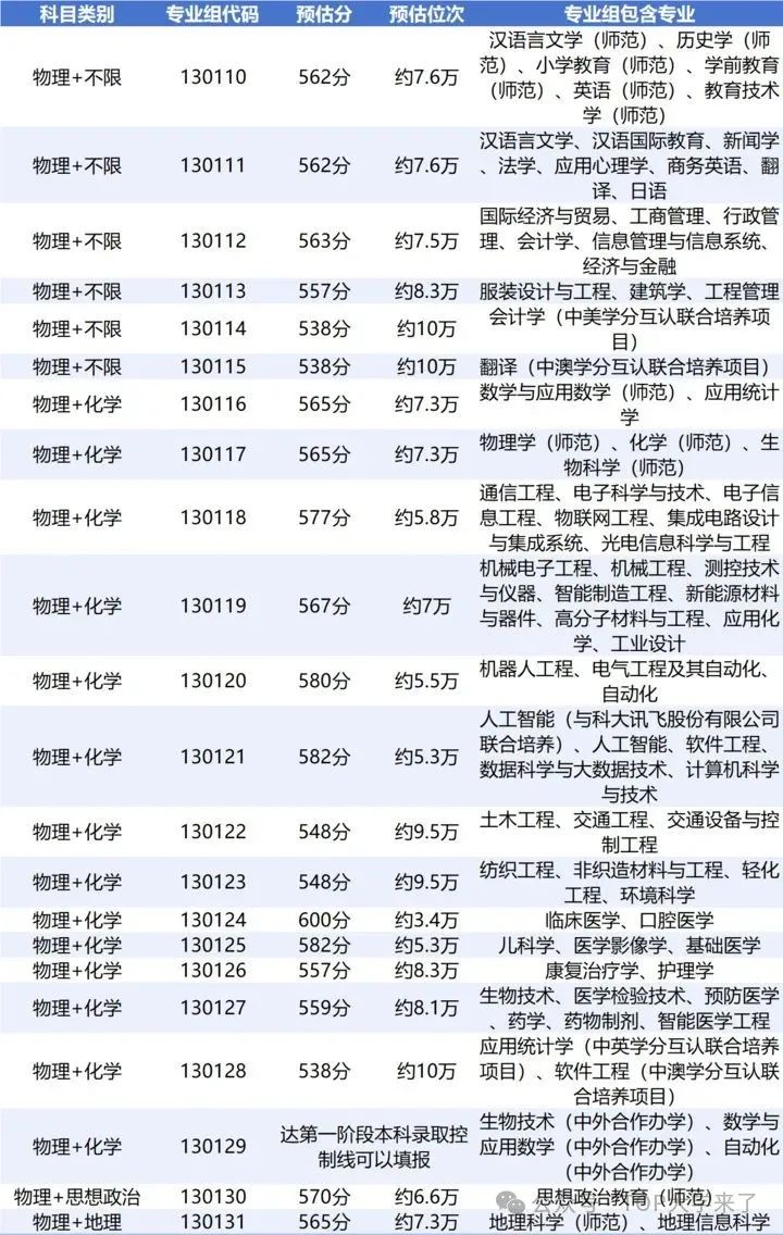 111204四年制专业组(首选科目为物理,再选科目不限)建议六万名以内可以报考(逐分段对应575分及以上)。