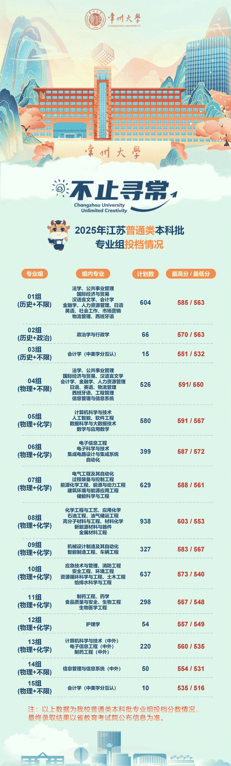 常州大学2025年在江苏投档分数线公布,具体内容如下: