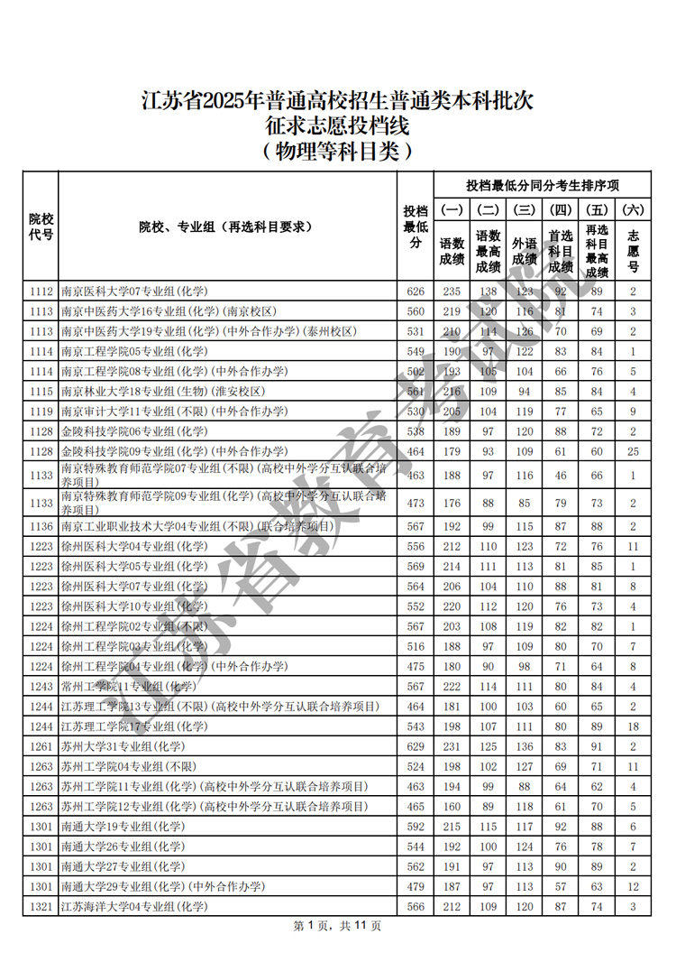 江苏省2025年普通高校招生普通类本科批次征求志愿投档线(物理等科目类)已发布,具体内容如下: