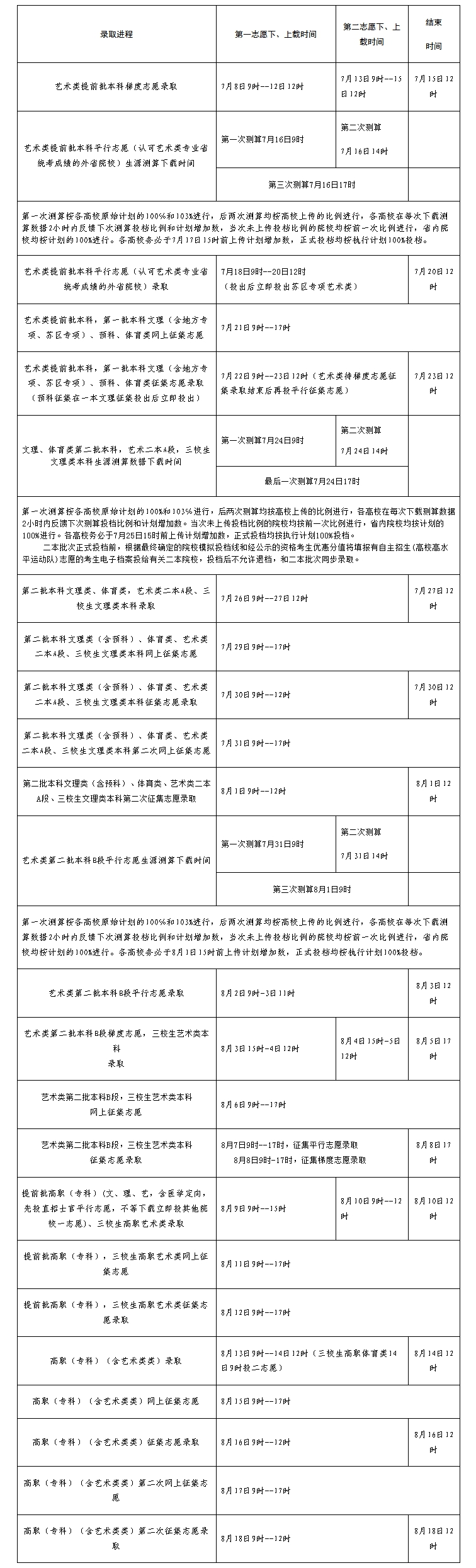 江西省2018年普通高校招生艺术类专业网上录取阅档时间安排