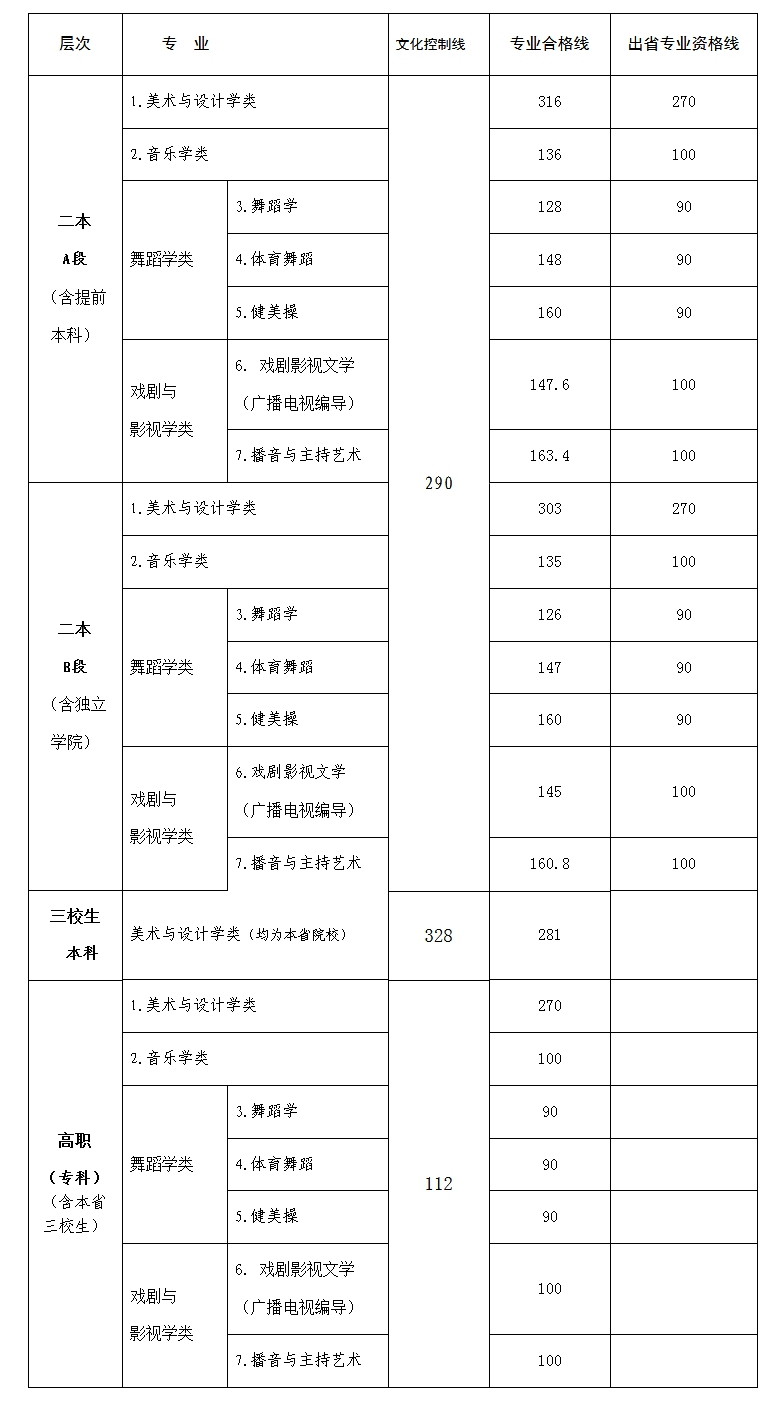 江西省2018年普通高校招生艺术类专业文化控制线、合格线、资格线