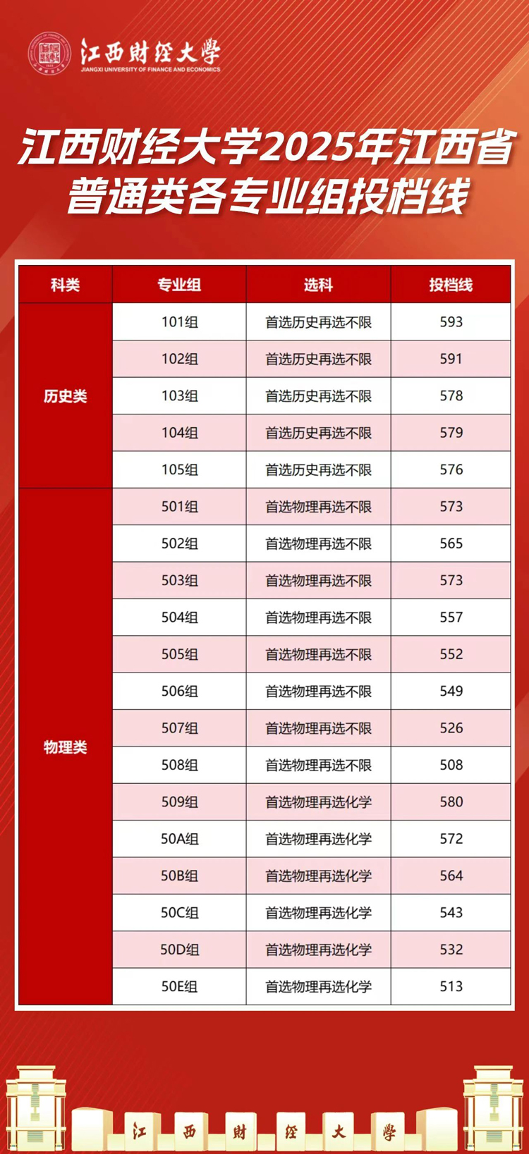 江西财经大学2025年江西省普通类各专业组投档线公布,具体内容如下:
