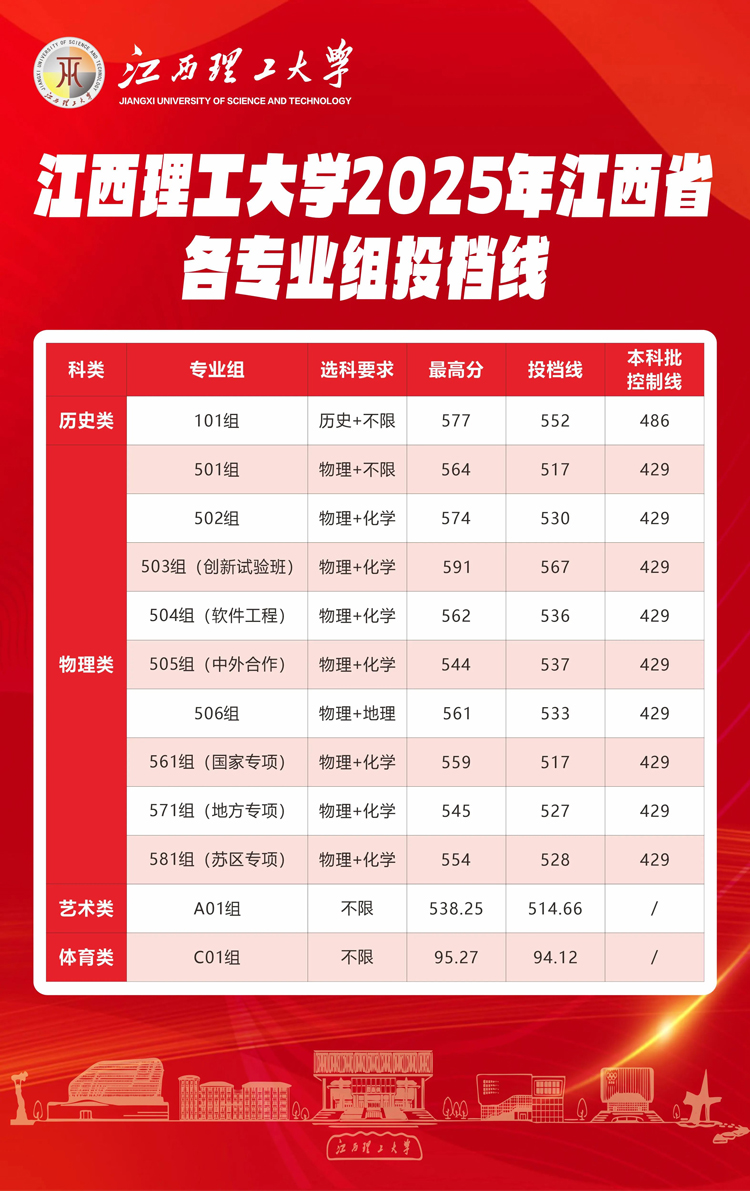 江西理工大学2025年江西省各专业组投档线公布,具体内容如下: