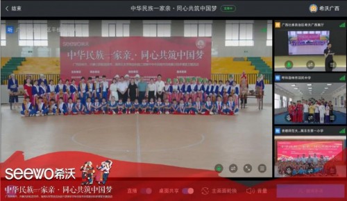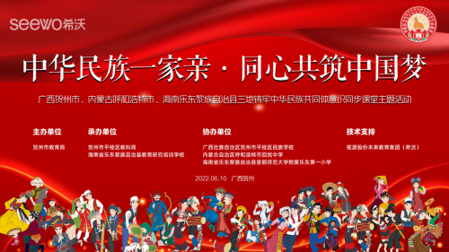 本次活动由贺州市教育局主办,由贺州市平桂区教科局、海南省乐东黎族自治县教育研究培训学校承办,广西壮族自治区贺州市平桂区民族学校、内蒙古自治区呼和浩特市回民中学、海南省乐东黎族自治县首都师范大学附属乐东第一小学联合协办,视源股份未来教育集团(简称希沃)提供技术支持,实现了足不出户便能跨越千里进行文化交流。