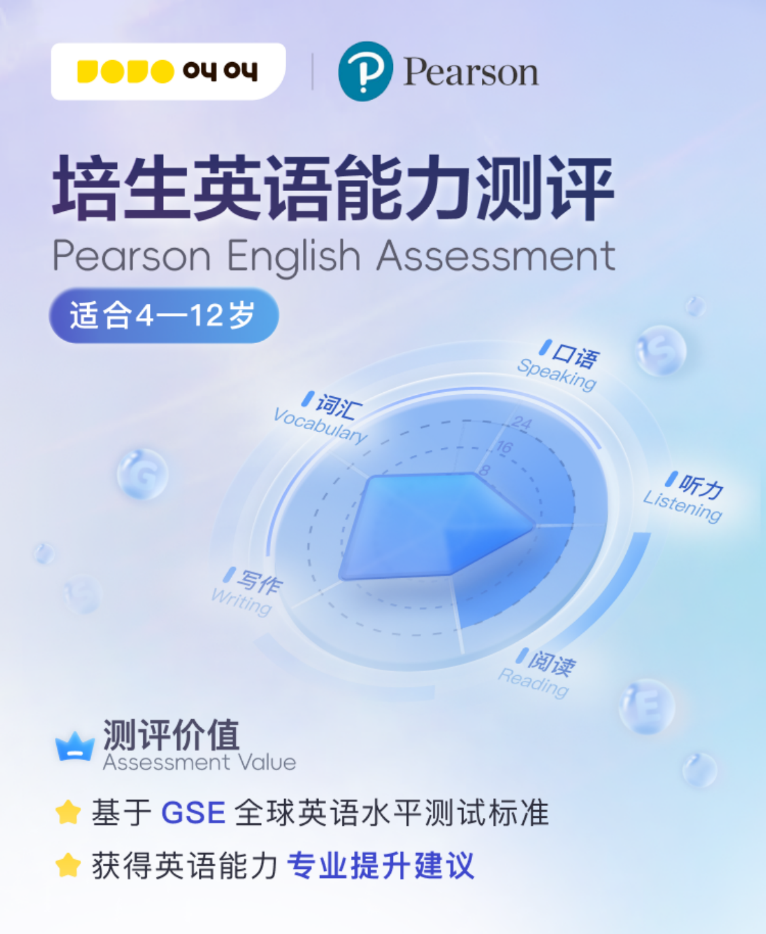 培生Placement Test是基于GSE研发的专业英语能力测评体系,涵盖英语听、说、读、写以及词汇等多个方面,能够科学全面评估测试者的英语综合能力,在学术机构、企业单位中被广泛应用。此次叫叫推出的儿童英语能力测评产品以培生Placement Test框架为基础,综合考虑国内儿童英语学习特点及环境进行设计,通过难易合理的题目设置、生动有趣的表现形式,科学准确测评4—12岁儿童听、说、读、写、词汇五大维度的英语综合能力状况。