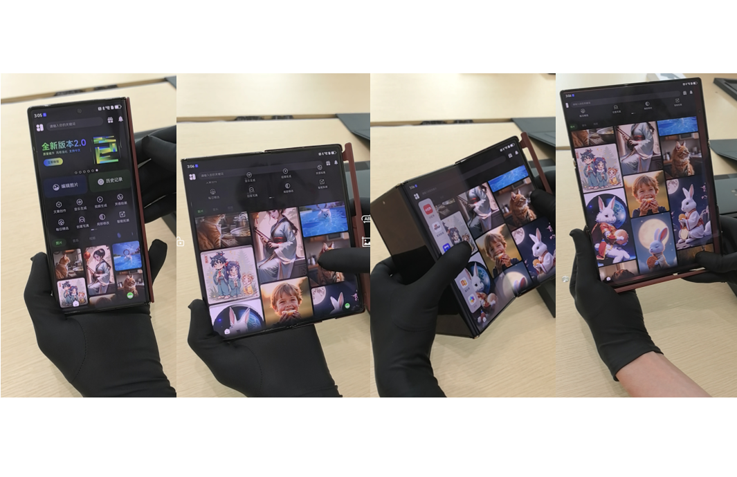 除了直板手机、平板,《点点设计》对三折叠手机也进行了完美适配。一折、两折丝滑转化;三折展开,并将屏幕竖起,秒变生产力工具,能够展示更多图片及细节,带来极致的视觉体验。在科技与艺术的结合产品中,使用《点点设计》的先进生产力AI工具,让艺术触手可及,每一个创意瞬间都变得简单而高效。