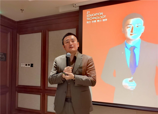 晚宴伊始,深圳二十一教育创始人陈俊宇先生身着笔挺的西装,面带微笑地走上台前,向在座的各位嘉宾做了“为家长排忧,为孩子赋能”的主题致辞。他的声音浑厚有力,言辞间充满了对教育事业的热爱与执着。