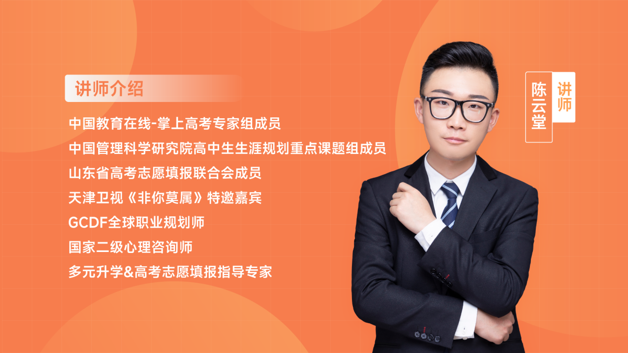 作者介绍:陈云堂,中国教育在线·掌上高考专家组成员,中国管理科学研究院高中生生涯规划重点课题组成员,山东省高考志愿填报联合会成员,天津卫视《非你莫属》特邀嘉宾,GCDF全球职业规划师,国家二级心理咨询师,多元升学&高考志愿填报指导专家。
