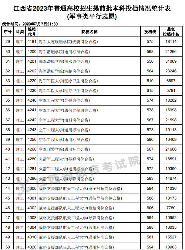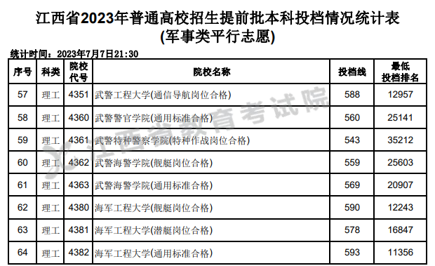 海军工程大学投档线590分(舰艇岗位合格)、578分(潜艇岗位合格)、593分(通用标准合格)