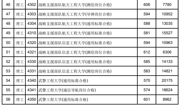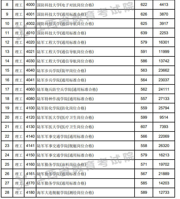 武警工程大学投档线588分(通信导航岗位合格)