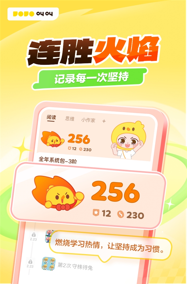 新版本引入“连胜火焰”核心机制。小用户们坚持每日在叫叫APP上完成学习任务,即可累积“学习小火苗”,形成持续燃烧的“连胜火焰”。坚持天数越多,火焰形态越旺盛。这种可视化的激励方式,让孩子的学习过程变得更具趣味性和成就感。