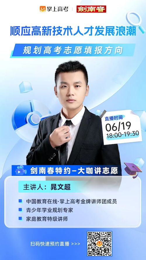 为助力考生进行科学填报,帮助广大考生了解志愿填报模式,6月11日-6月23日,中国教育在线·掌上高考联合剑南春特别推出“大咖讲志愿——2025志愿填报系列公益直播”活动,为各位考生和家长分享志愿填报相关干货,为大家答疑解惑。