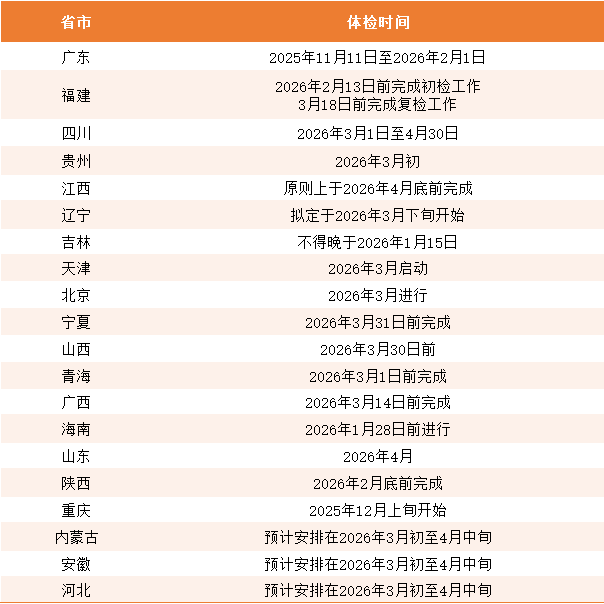 目前全国多个省份已公布2026年高考体检安排,整体时间跨度从2025年11月延续至2026年4月,不同省份的具体时间差异较大: