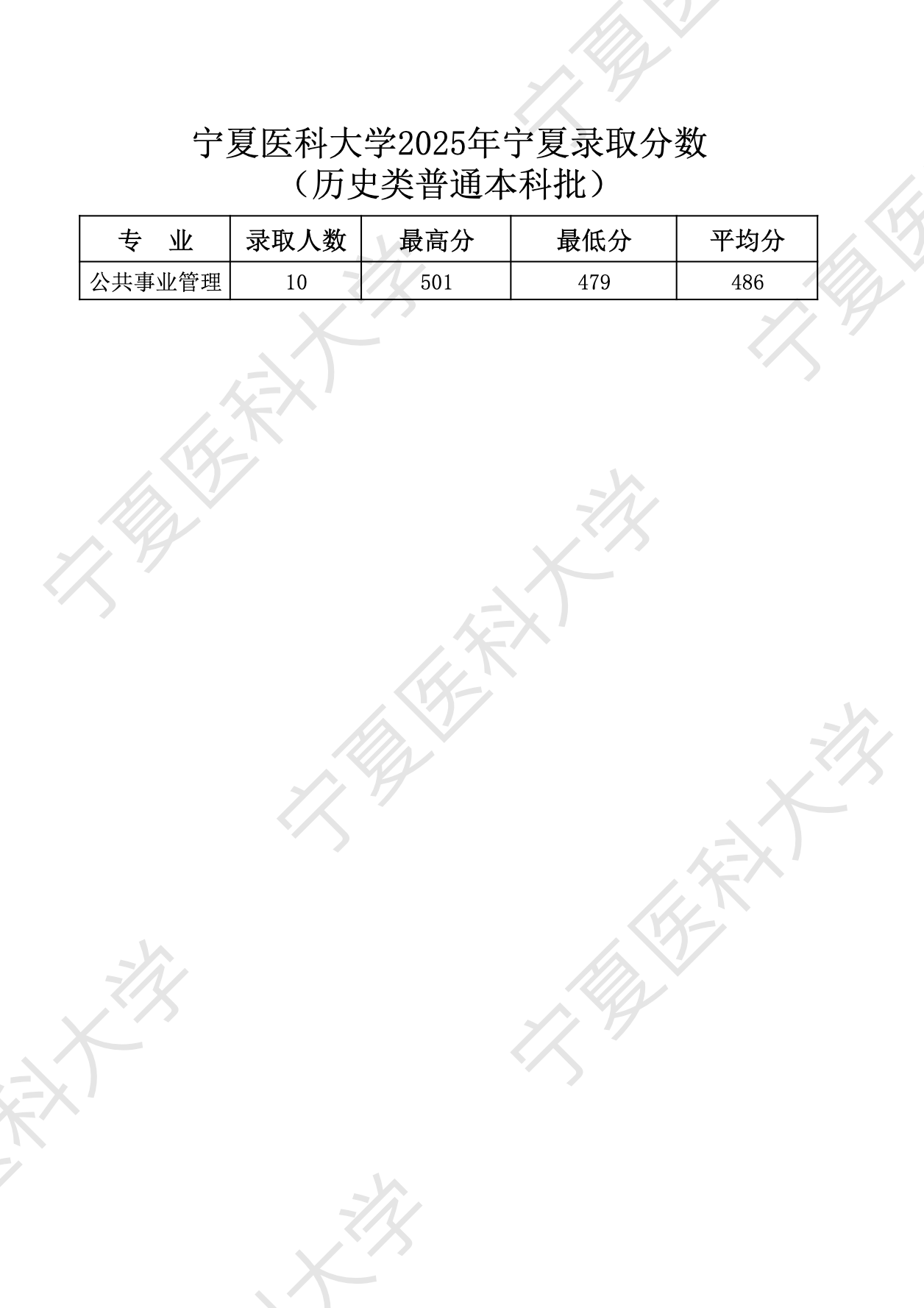 宁夏医科大学2025年普通高考招生录取公告(宁夏-历史类普通本科批)