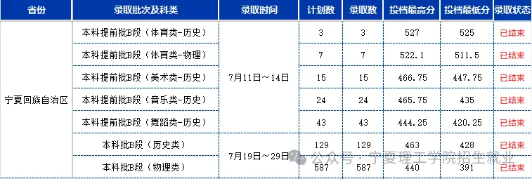 宁夏理工学院2025年宁夏回族自治区投档分数线公布