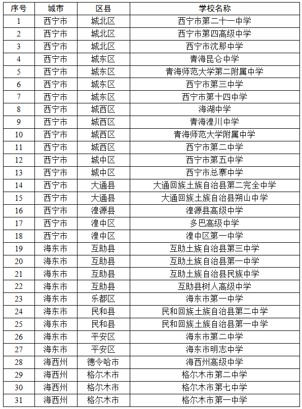 附件:2026年度青海省空军招飞宣传动员学校名单