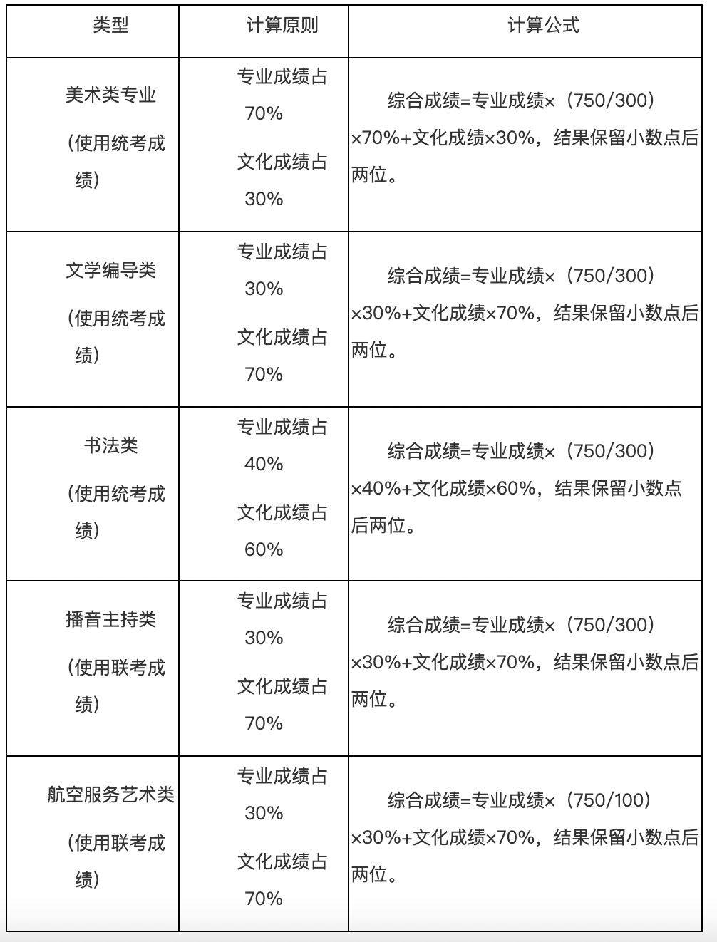 播音主持类、航空服务艺术类联考专业,根据综合分数从高到底排序投档。音乐类、影视戏剧表演类、服装表演类联考专业,根据专业成绩从高到低顺序投档。