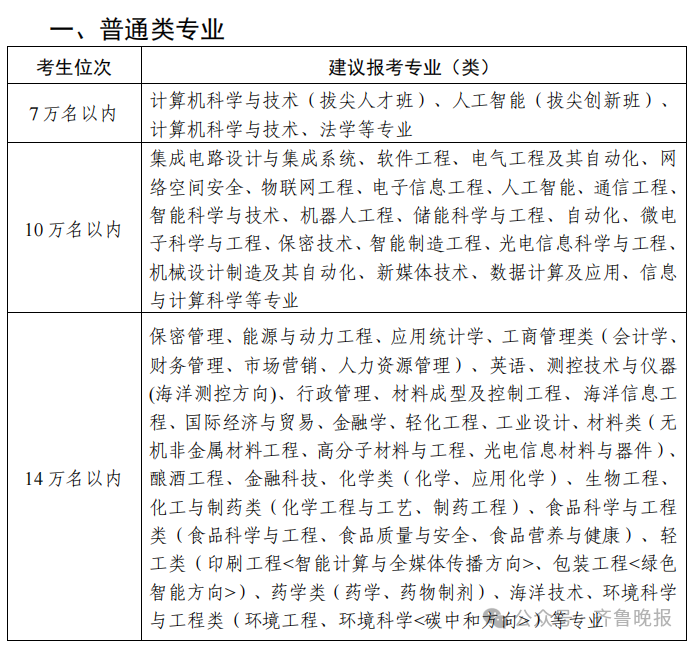 3、不限选考科目的其他本科专业,建议17.5万位次以上考生报考。