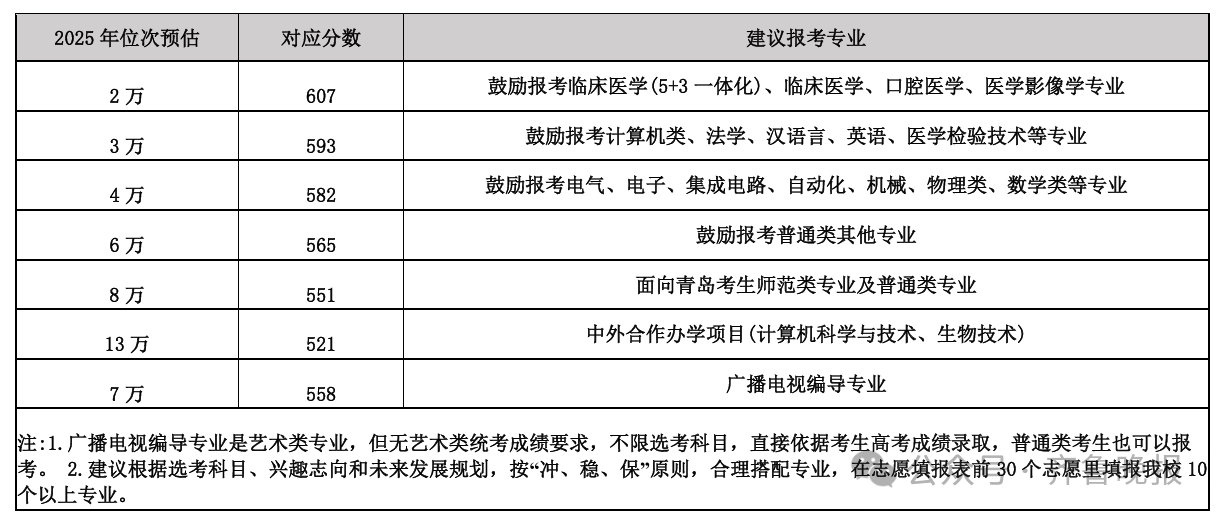 青岛大学给出的报考建议如下: