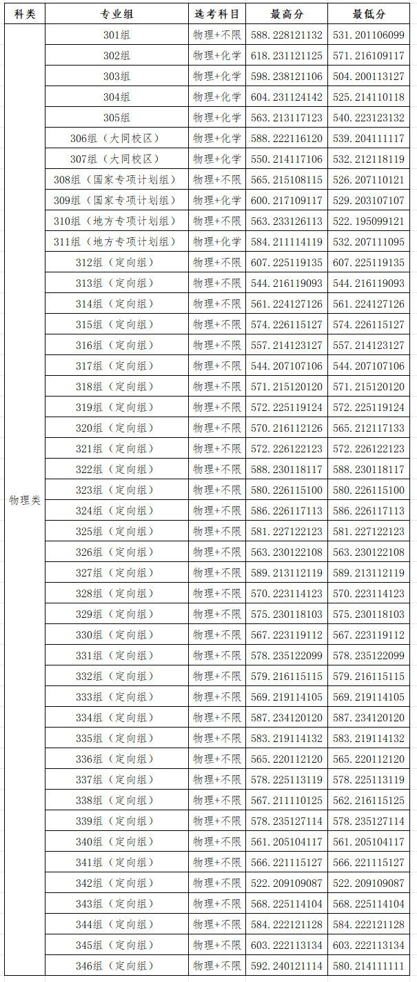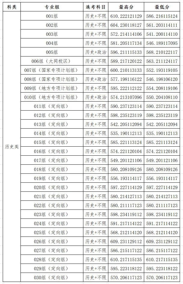 山西大学2025年山西省各专业组投档线公布,具体内容如下: