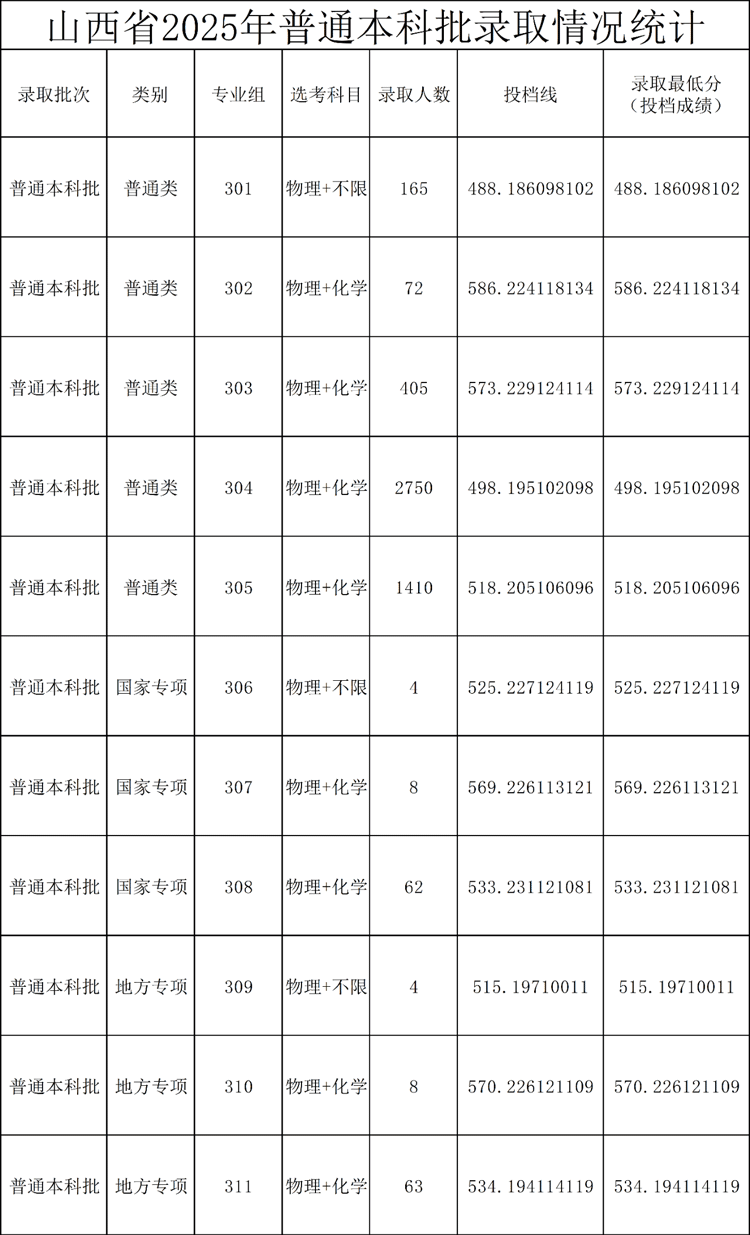 中北大学2025年山西省各专业组投档线公布,具体内容如下: