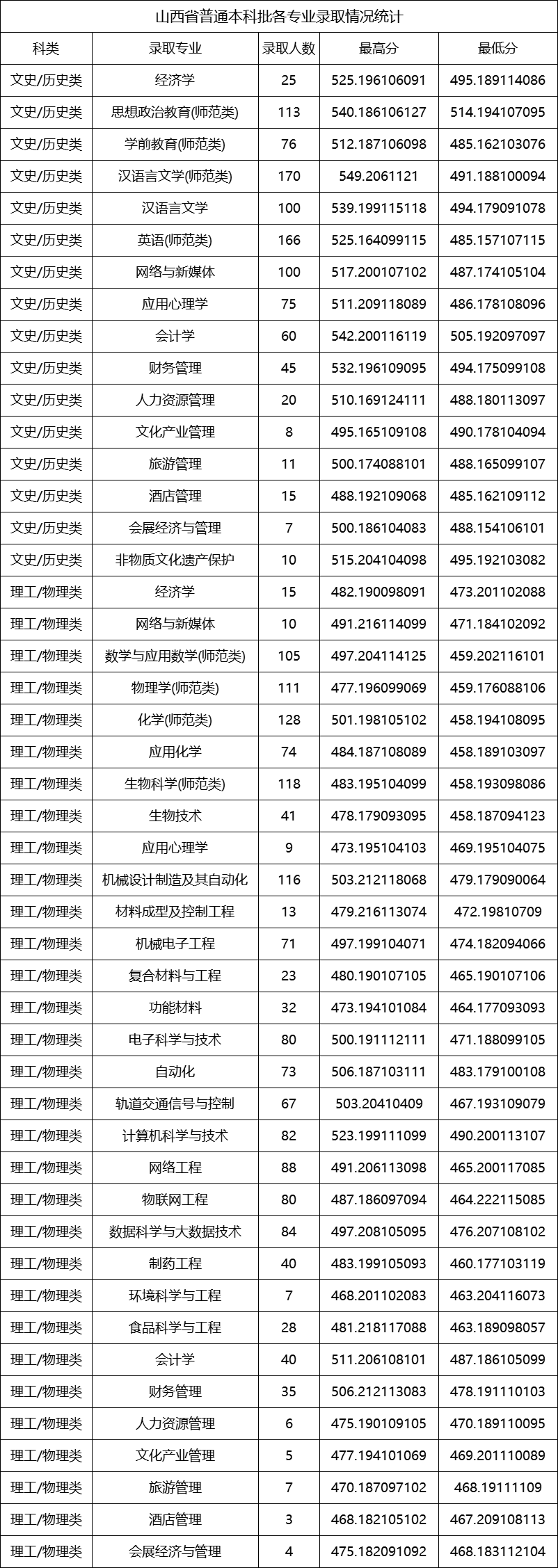 晋中学院2025年山西省各专业组投档线公布,具体内容如下: