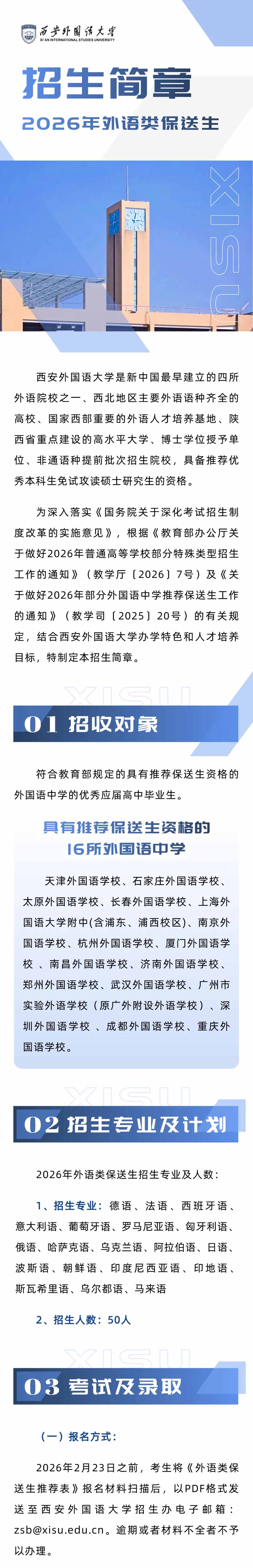 西安外国语大学2026年外语类保送生招生简章