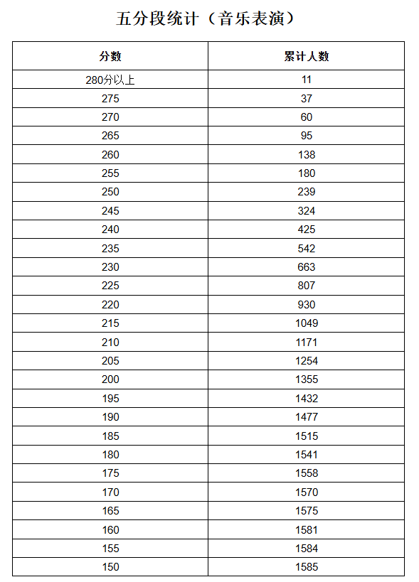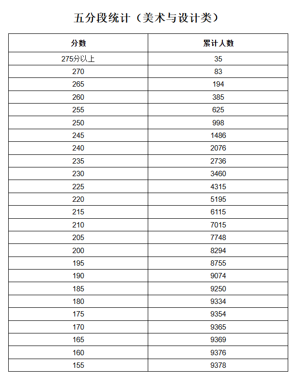 陕西:2026年普通高校招生艺术类专业课省级统考五分段统计表