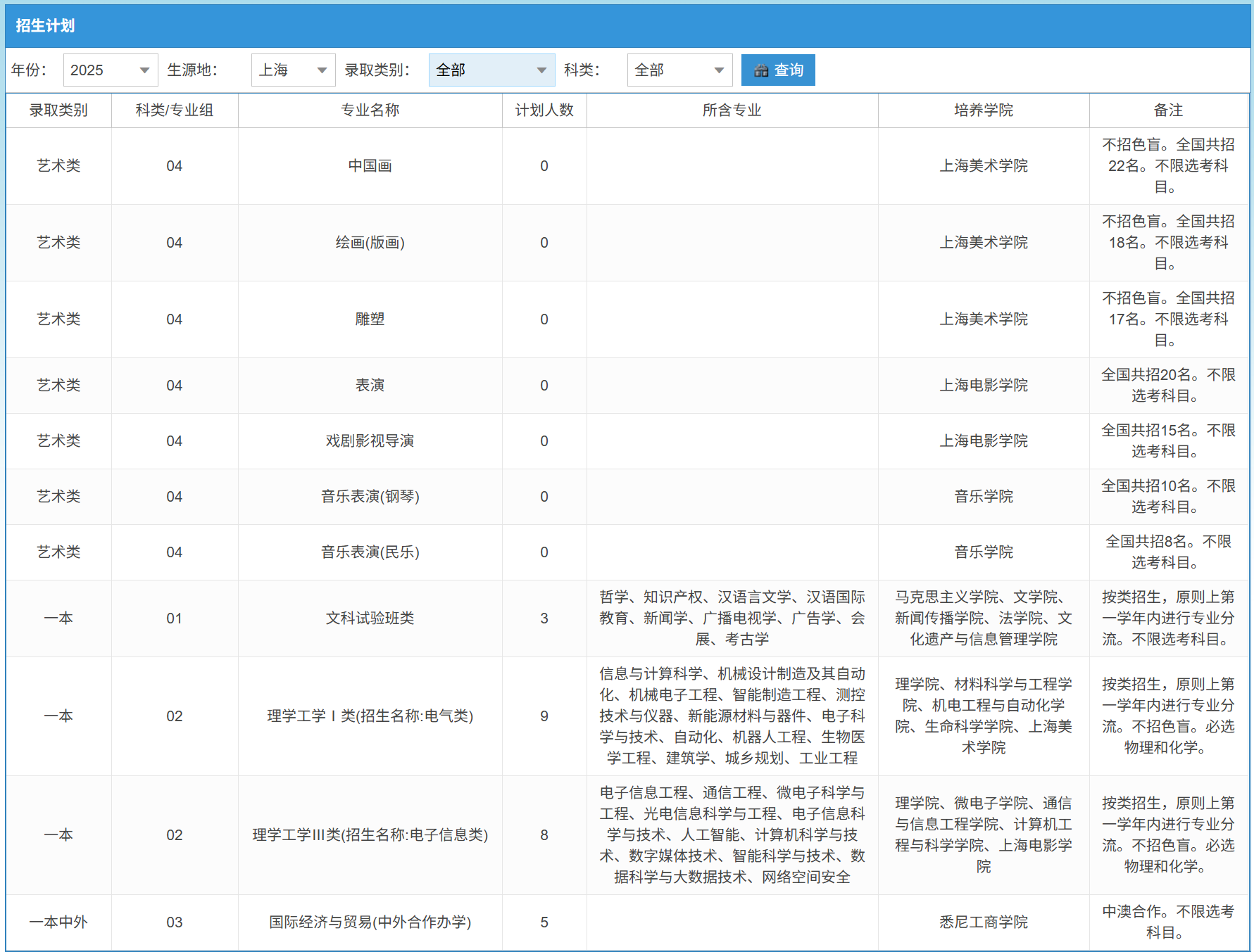 点击查看省外招生计划:2025上海大学各省招生计划-各专业招生人数是多少 —中国教育在线