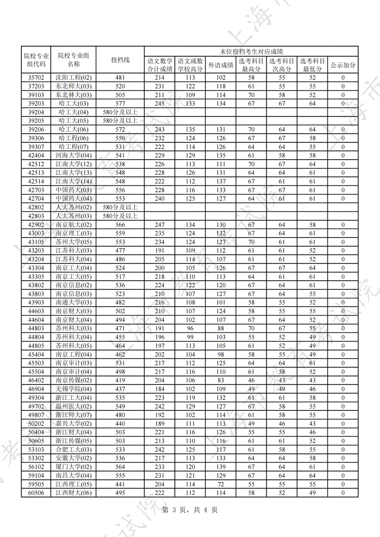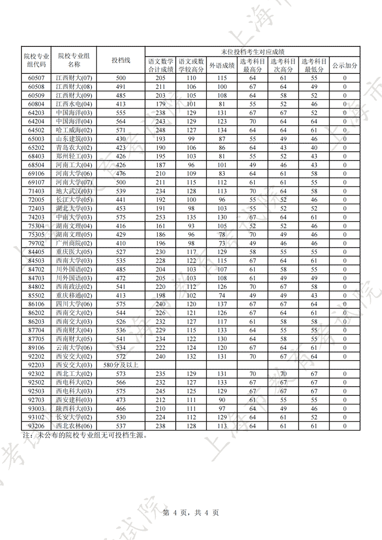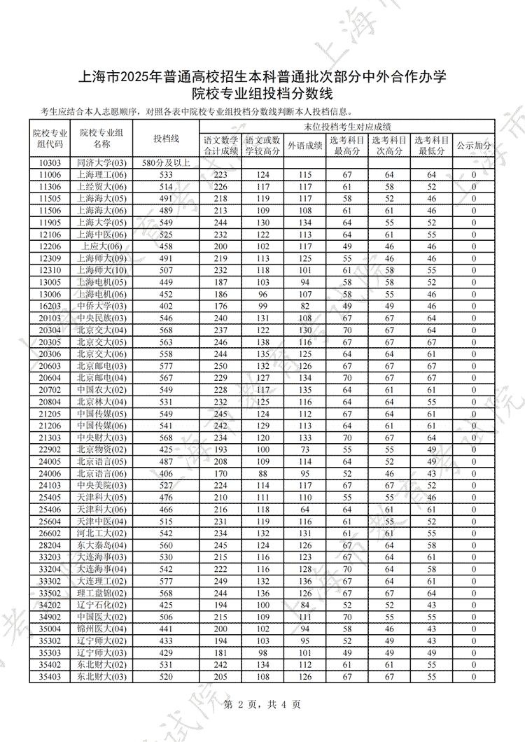 上海市2025年普通高校招生本科普通批次平行志愿院校Q组及部分中外合作办学院校专业组投档分数线公布,详见↓